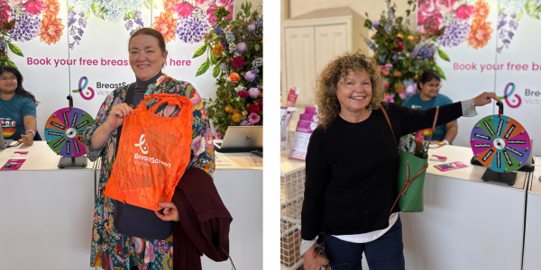 We met so many wonderful women this year, with many stopping for a quick chatabout eligibility, to check when they were next due for a breast screen, to access resources, or simply to share their experiences and stories. Others took immediate action by booking their breast screen on the spot or joining our Consumer Network to help shape the future of our service. To add a touch of fun, everyone who booked a breast screen or joined the Consumer Network was invited to spin the wheel for a chance to win prizes, creating moments of joy alongside meaningful conversations.