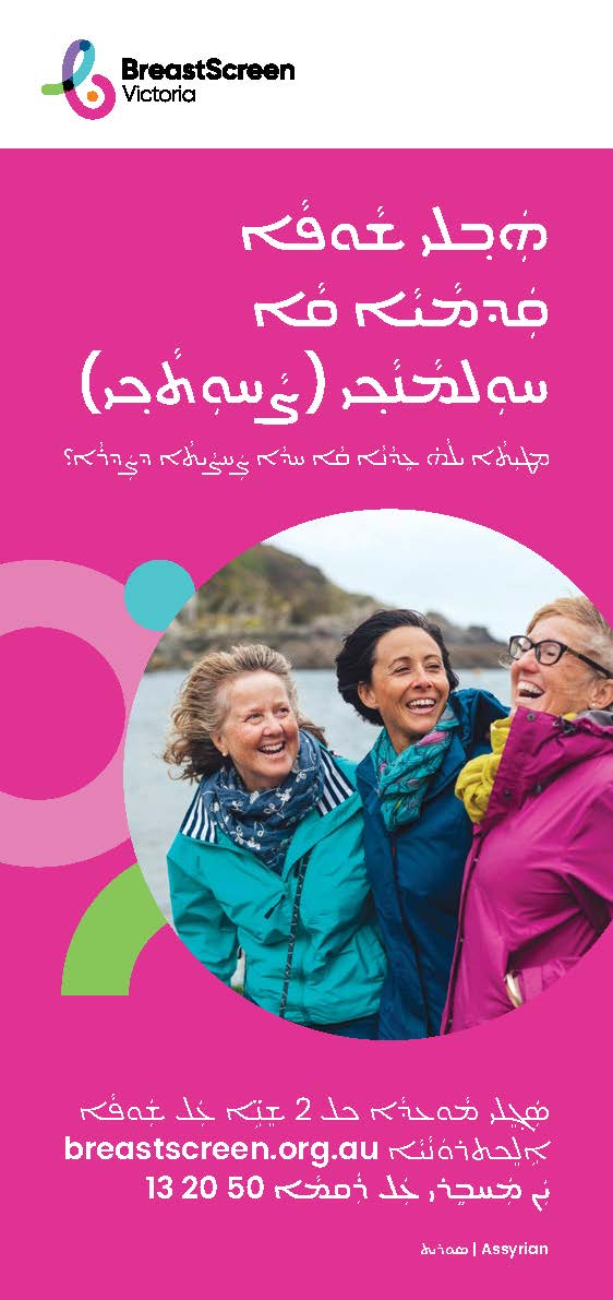 ܫܩܘܿܠܝ ܡܵܘܥܕܵܐ ܥܲܠ ܫܲܘܦܵܐ ܐܹܠܸܟܬܪܘܿܢܵܝܵܐ breastscreen.org.au ܝܲܢ ܡܲܚܒܸܪܝ ܥܲܠ ܪܲܩܡܵܐ ‭13 20 50